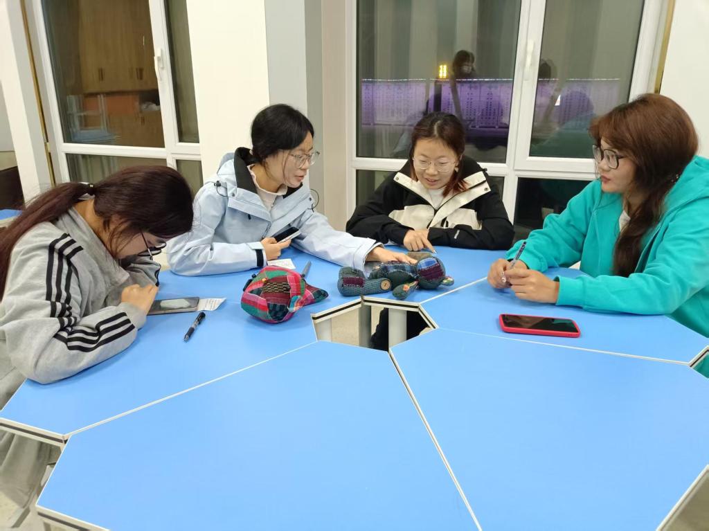 活动伊始,活动负责人向每位同学分发了一只纹样独特的鲁锦玩偶。在负责人的引导下,同学们认真观察手中的玩偶,并在便签上写下其色彩、纹样及所联想到的文化特点,如“蓝色经纬交织,寓意沉稳与智慧”“红黄配色热烈,象征齐鲁大地的质朴与热情”等。随后,大家手持便签在场地内自由走动,根据彼此所写的鲁锦玩偶特点寻找审美相近、志趣相投的伙伴,组成4-5人的临时小组。组队完成后,各小组进入深入交流环节。大家围绕鲁锦布片的文化内涵与艺术特色展开讨论,并结合鲁锦布片的特点进行了生动的自我介绍,分享了个人兴趣、家乡风貌以及对大学生活的期待。在轻松愉快的氛围中,现场笑声与掌声不断,彼此间的陌生感迅速消融。交流结束后,各小组选出一名代表进行总结发言,依次介绍本组鲁锦玩偶的整体风格特点以及各位组员的个性特征,促进了同学间的相互理解与认知。