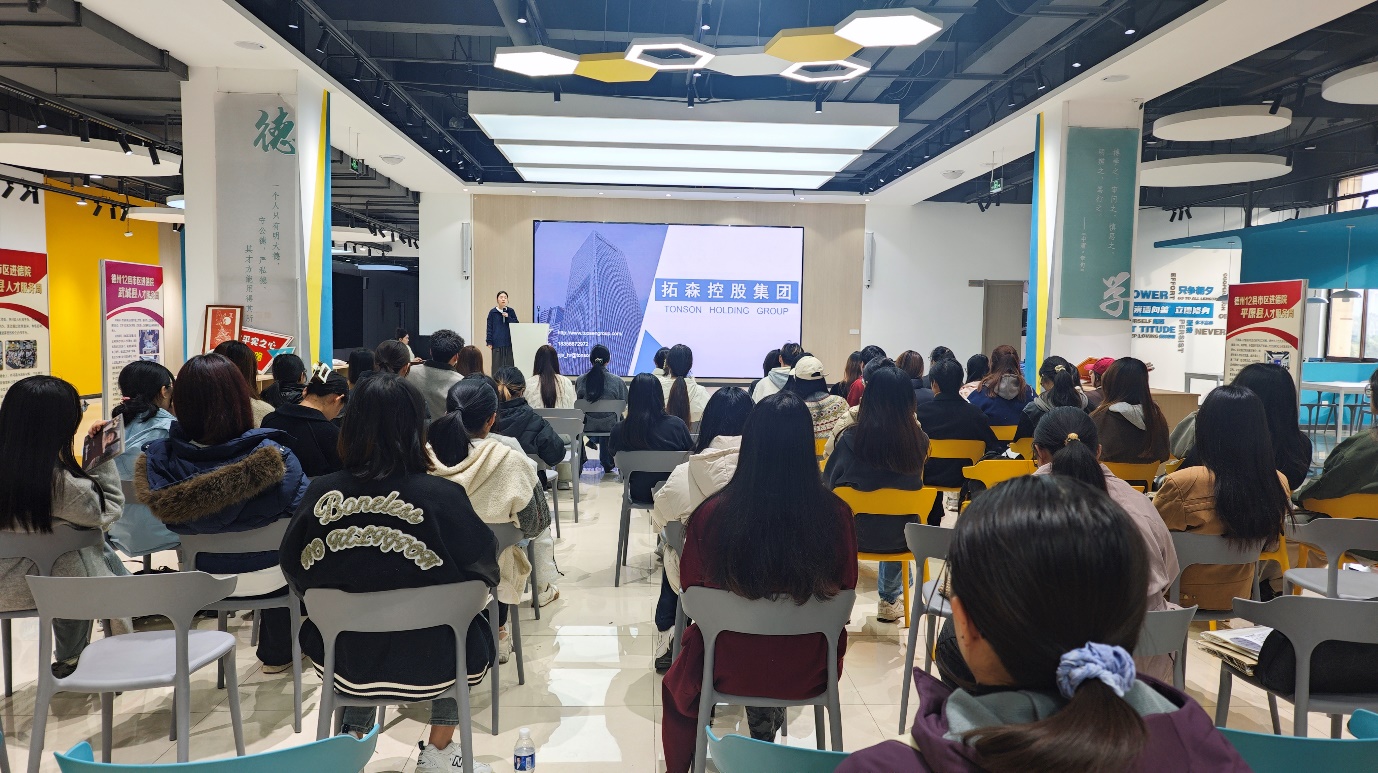 招聘会上,拓森控股集团通过PPT展示与视频播放相结合的形式,全方位呈现了企业文化底蕴、发展概况及未来战略规划——包括新增研发中心建设、海外市场拓展计划、人才梯队培养体系等核心内容,让在场毕业生对企业实力与行业前景有了直观且深入地了解。学子们专注聆听、认真记录,针对岗位需求、职业发展、薪资福利等重点问题积极提问,企业代表逐一细致解答。会后,企业随即开启现场面试通道,为毕业生提供“一站式”求职机会。同学们纷纷递交简历,与企业招聘负责人面对面深入沟通,全力把握宝贵的就业机遇。